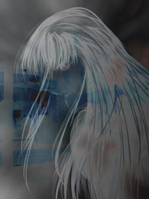 ぎろり。あちこちいじくっていたら瞳だけ赤っぽくなって、